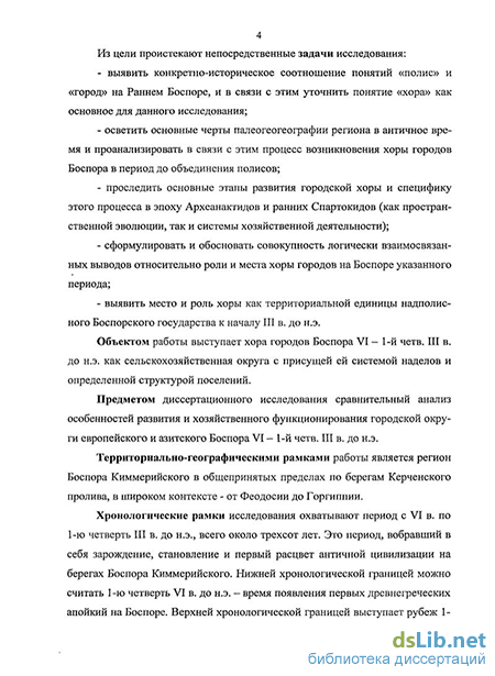 Основной целью диссертационной работы является исследование процесса становления и развития хоры городов Боспора как основного элемента организации его сельской территории в VI – 1-й четв. III вв. до н.э.