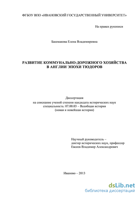 Цель нашего исследования состоит в изучении развития коммунального хозяйства Англии конца XV—начала XVII в. и выявлении роли центральной и муниципальной власти в становлении и развитии этой сферы.
