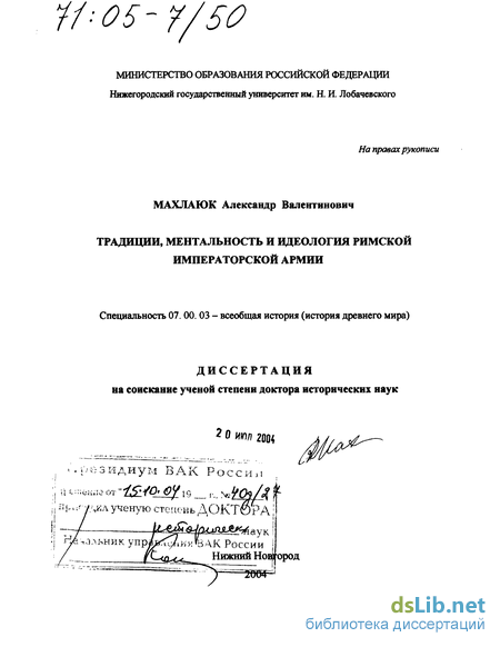 7) основываясь на исследовании содержания, иерархии и внутренней логики ценностно-нормативных понятий и представлений, относящихся к сфере осуществления высшей военной власти, установить их корреляции с практическими установками и реальным поведением римских полководцев в тех или иных ситуациях, с социально-политическими реалиями римской державы и некоторыми базовыми социокультурными параметрами римской цивилизации в целом.