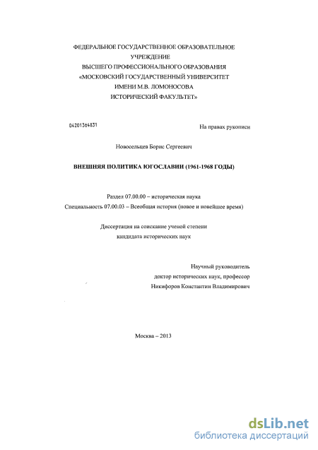 Если югославская внешняя политика 1950-х гг. представляется достаточно разработанной темой и может служить добротным фундаментом для диссертации, то, говоря о 1960-х гг., следует констатировать, что этот период только начинает разрабатываться сербскими учеными.