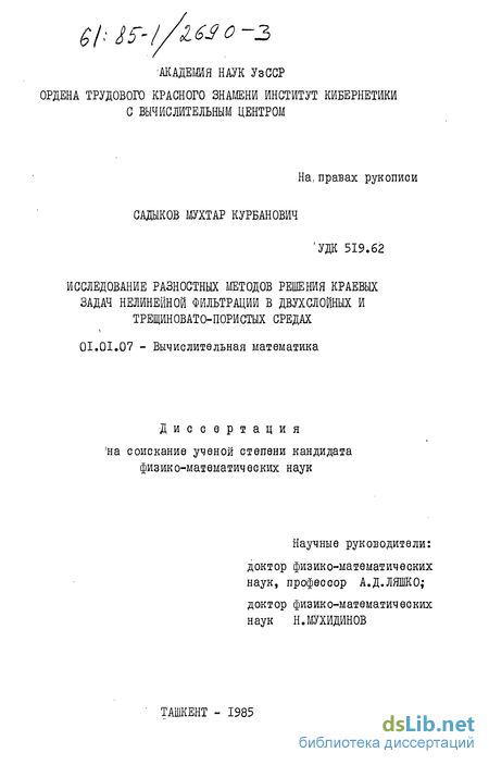 - Построение и исследование разностных схем для решения краевой задачи нелинейной фильтрации в трещиновато-пористых средах