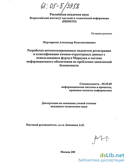 Целью диссертации является разработка методов, алгоритмов и программных средств автоматизированных подсистем регистрации и классификации химико-структурных данных для решения задач в системе информационного обеспечения по проблемам химической безопасности.