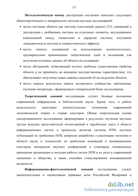 Таким образом, исследование системы НТИ в рамках настоящей диссертационной работы включает следующие основные тематические направления: анализ организационной структуры системы НТИ, характеристику основных элементов системы и ее координаторов, анализ роли государственных (административных) регуляторов в развитии системы НТИ, изучение состава потребителей НТИ и их влияния на процесс генерации информационных ресурсов, анализ технологической составляющей системы НТИ, а также изучение вопросов участия системы НТИ в международном сотрудничестве и вопросов влияния международных связей на развитие системы.