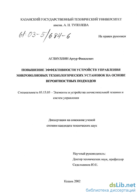 Аглиуллин Артур Факилевич. Повышение эффективности устройств управления микроволновых технологических установок на основе вероятностных подходов : диссертация ... кандидата технических наук : 05.13.05.- Казань, 2002.- 161 с.: ил. РГБ ОД, 61 03-5/684-6