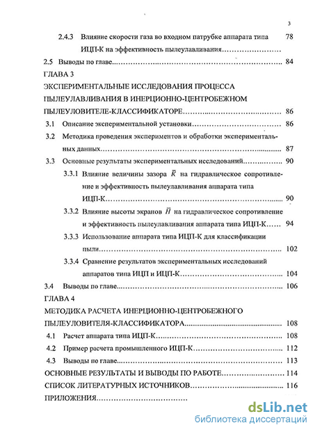 ГЛАВА 4 Методика расчета инерционно-центробежного пылеуловителя-классификатора 108