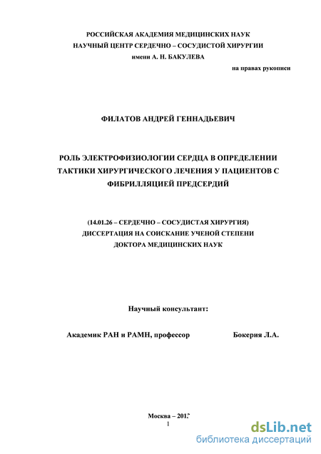 Филатов Андрей Геннадьвич. Роль электрофизиологии в определении диагностической и лечебной тактики у пациентов с фибрилляцией предсердий: диссертация ... доктора медицинских наук: 14.01.26 / Филатов Андрей Геннадьвич;[Место защиты: Научный центр сердечно-сосудистой хирургии им.А.Н.Бакулева РАМН].- Москва, 2014.- 204 с.