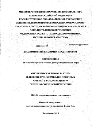 Разработан и- внедрен в клиническую практику оригинальный способ неоперативного закрытия артериовенозной фистулы после тромбэктомии из магистральной вены (патент РФ на изобретение. № 2281701 «Способ* хирургической профилактики тромбоэмболии легочной артерии»).