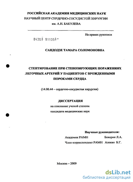 Впервые в стране разработана методика стентирования изолированных и бифукационных стенозов легочных артерий. Результаты, полученные при выполнении диссертационной работы, позволяют рекомендовать стентирование легочных артерий в клиническую практику кардиохирургических центров России. Положения, выносимые на защиту: