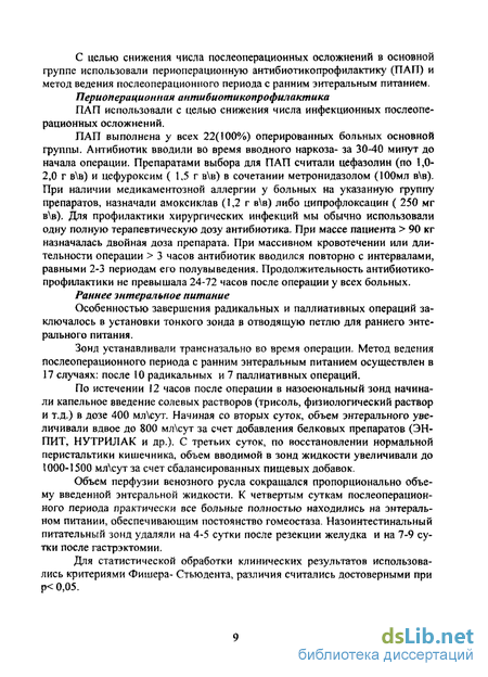 2. Разработанная лечебная тактика с использованием комплекса профилактических мероприятий, включающего периоперационную антибиоти-копрофилактику и раннее энтеральное питание позволяет уменьшить число послеоперационных инфекционных осложнений после радикальных операций - на 18,9%, а летальность - на 14,9%, соответственно.