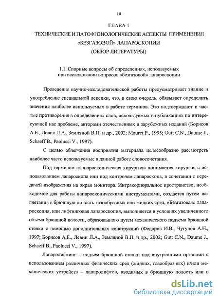 1.1. Спорные вопросы об определениях, используемых при исследовании вопросов «безгазовой» лапароскопии 11