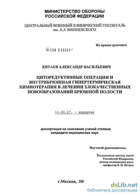 Лечение колоректального рака базируется, в первую очередь, на хирургических принципах: объем оперативного вмешательства зависит от вида опухоли и стадии опухолевого процесса. В настоящее время расширенные и комбинированные операции при распространенных злокачественных опухолях органов брюшной полости являются наиболее обоснованными и, по имеющимся литературным данным, дают наилучшие отдаленные результаты (Стирнс М.В., 1983; Сельчук В.Ю., 2003; Яицкий Н.А., 2004; Wong R.J. 1990; Wydra D. et all.., 2003). Узловым вопросом при лечении колоректального рака с канцероматозом брюшины является способ доставки цитотоксического агента к опухоли (Esquivel J.et all., 1999).