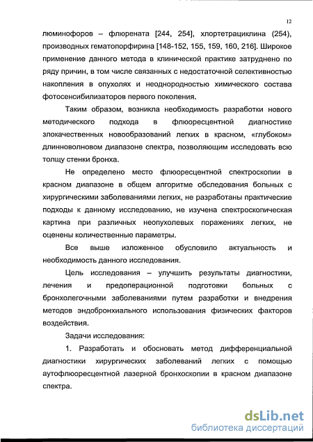 Разработать и обосновать метод дифференциальной диагностики хирургических заболеваний легких с помощью аугофлюоресцентнои лазерной бронхоскопии в красном диапазоне спектра.
