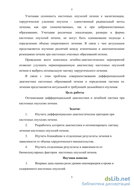 Учитывая склонность кистозных опухолей печени к малигнизации, хирургическое удаление опухоли - единственный радикальный метод лечения, как при злокачественных, так и при доброкачественных образованиях [Вишневский В.А. с соавт., 2008]. Учитывая различные локализации, размеры и формы кистозных опухолей печени, не могут быть одинаковыми подходы к определению объема оперативного лечения. В связи с чем актуальным представляется изучение различий между атипичными и анатомическими резекциями печени при кистозных очаговых образований печени.