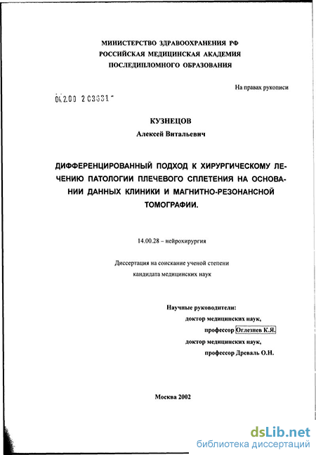 Современные методы диагностики и использование микрохирургической техники в последние десятилетия позволили заметно улучшить результаты лечения поражений плечевого сплетения у значительной группы больных, ранее считавшихся бесперспективными. Однако, и по сей день эта группа больных представляет собой одну из наиболее сложных проблем для нейрохирурга. В свете данных последних исследований пациенты с травматическими повреждениями плечевого сплетения, синдромом верхней грудной апертуры и опухолями плечевого сплетения требуют скрупулезной оценки и тщательного подбора адекватных методов лечения (Оглезнев К.Я. и др., 1989; Шевелев И.Н. и др., 1989; Carlstedt, 1995; Kline et al., 1992; Leffert, 1985; Samii et al., 1997).