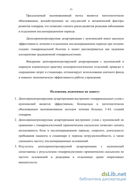 Допплероконтролируемая дезартеризация с мукопексией является легко воспроизводимым малоинвазивным методом лечения, который достоверно сокращает продолжительность операции, послеоперационный койко-день, частоту осложнений и продолжительность временной нетрудоспособности.