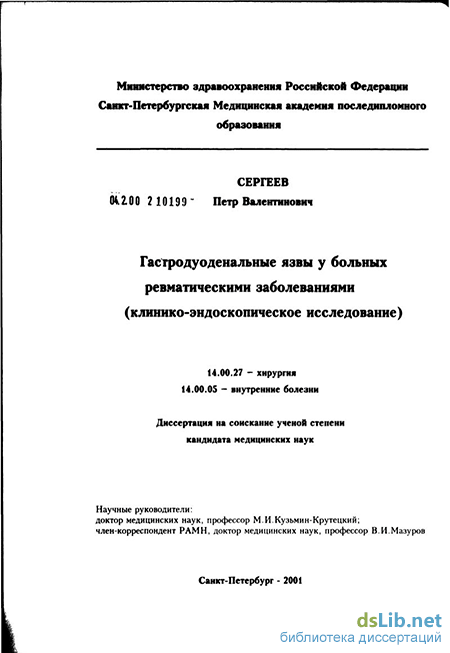 Изучение клинических и морфологических особенностей гастродуоденальных язв у больных ревматическими заболеваниями, а также разработка подходов к их' ранней диагностике.