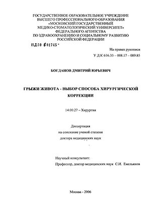 Богданов Дмитрий Юрьевич. Грыжи живота - выбор способа хирургической коррекции : диссертация ... доктора медицинских наук : 14.00.27 / Богданов Дмитрий Юрьевич; [Место защиты: ГОУВПО "Московский государственный медико-стоматологический университет"].- Москва, 2006.- 199 с.: ил.