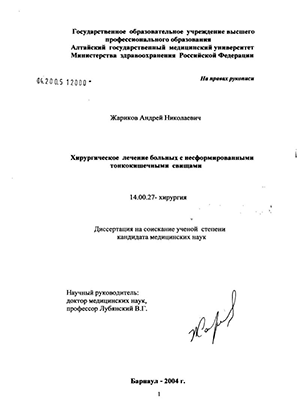 Апробация работы. Основные положения диссертации изложены: на заседании Алтайского краевого общества хирургов (1998); на конференции молодых ученых Алтайского государст-венного медицинского университета (1999); на юбилейной научно-практической конференции хирургов, посвященной 50-летию Алтайской краевой клинической больницы (2000); на научно-практической конференции хирургов Сибирского региона с участием академика РАМН B.C. Савельева (Белокуриха, 2002); на объединенном заседании кафедр общей хирургии, факультетской хирургии с курсом хирургии ФУВ им. И.И.Неймарка, госпитальной хирургии, оперативной хирургии и топографической анатомии (2003).