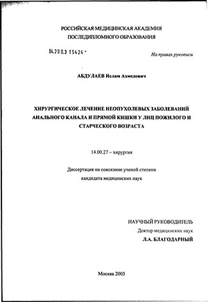 - Выбор метода хирургического лечения свищей прямой кишки у лиц пожилого и старческого возраста