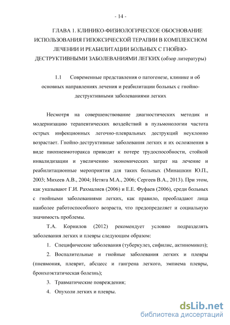 ГЛАВА 1. Клинико-физиологическое обоснование использования гипоксической терапии в комплексном лечении больных с гнойно-деструктивными заболеваниями легких (обзор литературы) 13