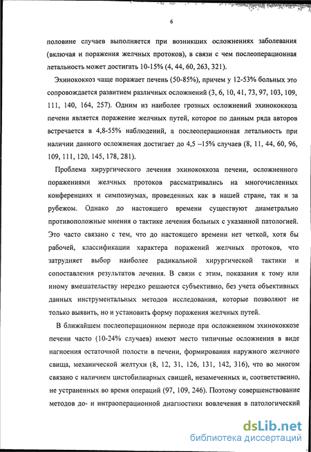 Несмотря на значительные достижения в хирургии печени, связанных с совершенствованием методов инструментальной диагностики, внедрением новых технических средств при выполнении операций, вопросы ранней диагностики и эффективного хирургического лечения эхинококкоза печени не получили достаточного разрешения. Кроме того, к сожалению, не имеет тенденции к снижению и количество пораженных, а в результате поздней диагностики хирургическое лечение эхинококковых кист не менее чем в половине случаев выполняется при возникших осложнениях заболевания (включая и поражения желчных протоков), в связи с чем послеоперационная летальность может достигать 10-15% (4, 44, 60, 263, 321).