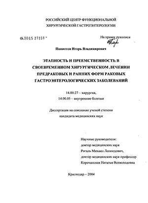 Разработать показания к ранним своевременным хирургическим методам лечения предраковьж заболеваний пищевода, желудка и толстой