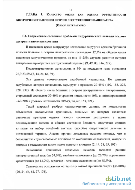 ГЛАВА 1, Качество жизни как опенка эффективности хирургического лечения острого деструктивного панкреатита (Обзор литературы) 11