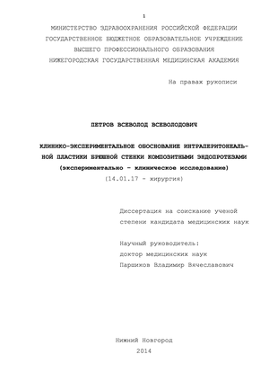Публикации. По теме диссертации опубликовано 20 печатных работ, из них 8 в ведущих рецензируемых научных журналах, определённых Высшей аттестационной комиссией. Получен патент РФ на изобретение (№ 2423933 “Способ пластики грыжевого дефекта при больших вентральных грыжах”).