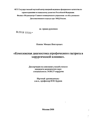 Разработанный комплексный подход к диагностике атрофического гастрита внедрен в клиническую практику филиала «Мединцентр» Глав УпДК при МИД России.