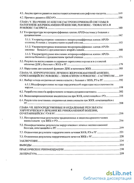 Углубленный анализ причин развития постхолецистэктомического рефлюкс-эзофагита и рефлюкс-гастрита и данных комплексного обследования больных при желчнокаменной болезни позволил разработать принципы дифференцированного подхода при выборе хирургической тактики. Усовершенствованы способы предоперационной подготовки пациентов с желчнокаменной болезнью, сочетающейся с рефлюкс-эзофагитом и рефлюкс-гастритом. Проведена сравнительная оценка результатов видеолапароскопических и традиционных способов холецистэктомии и коррекции рефлюкс-эзофагита и рефлюкс-гастрита. Показано преимущество видеолапароскопической коррекции рефлюкс-эзофагита при желчнокаменной болезни.