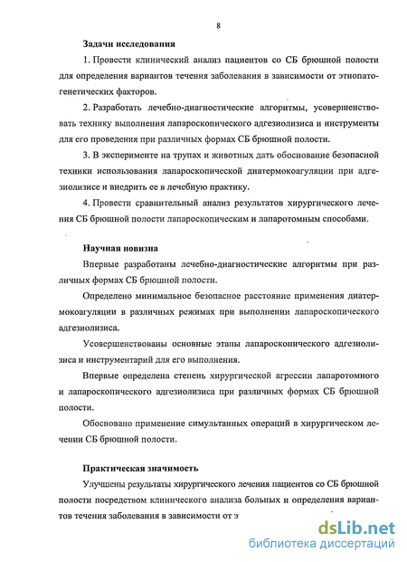 2. Разработать лечебно-диагностические алгоритмы, усовершенствовать технику выполнения лапароскопического адгезиолизиса и инструменты для его проведения при различных формах СБ брюшной полости.