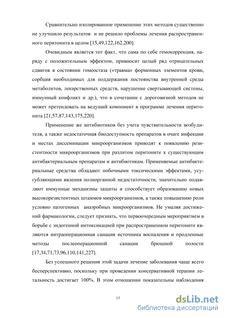 Поэтому как никогда важен комплексный подход в решении этой насущной проблемы. Вместе с разработкой и совершенствованием техники хирургических вмешательств, модернизацией инструментария и внедрением новых технологий равными по значимости являются борьба с интоксикацией, воздействие на микрофлору и восстановление нарушенных функций жизненно важных органов и систем. Все ранее известные и вновь разработанные методы экстракорпоральной гемокоррекции в виде гемо-, плазмо-, лимфосорбции, лечебного плазмафереза, ксеноспленоперфузии, ультрафиолетового и лазерного облучения аутокрови, а также гипербарической оксигенации воздействуют лишь на одну из составляющих эндогенной интоксикации - эндотоксемию и имеют значение как лечебный фактор только при полноценной санации брюшной полости, устраняющей источник непрерывного поступления токсинов [3,36,223]. Сравнительно изолированное применение этих методов существенно не улучшило результатов и не решило проблемы лечения распространенного перитонита в целом [15,49,122,162,200].