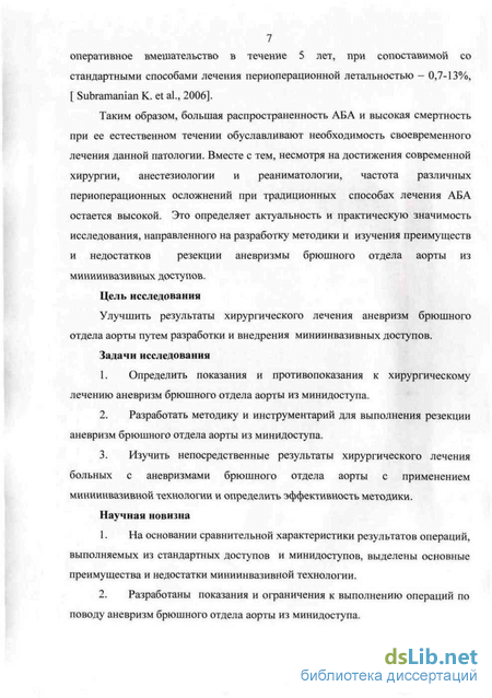 В диссертации разработаны показания и ограничения к резекции суб-инфраренальных аневризм аорты из минидоступа.