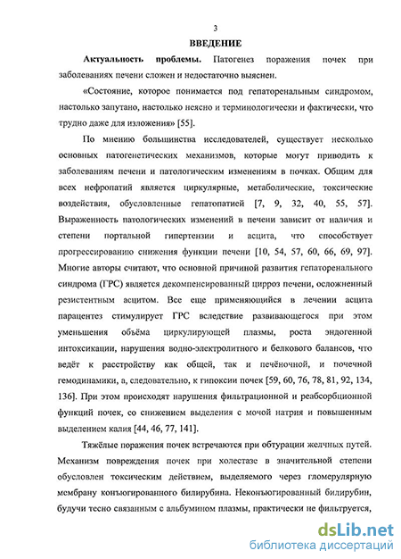 По мнению большинства исследователей существует несколько основных патогенетических механизмов, которые могут приводить к заболеваниям печени и патологическим изменениям в почках. Общим для всех нефропатий является циркулярные, метаболические, токсические воздействия, обусловленные гепатопатией [БлюгерА.Ф. и соавт., 1975, 1984; Подымова С.Д., 1993; Шулутко Б.И., 1995; Мухин НА. и соавт., 1985, 2001; Arroyo V. Et al., 1986]. Выраженность патологических изменений в печени зависит от наличия и степени портальной гипертензии и асцита, что способствует прогрессированию снижения функции печени [Ивашкин В.Т., 2002; Шулутко Б.И., 1987; Arroyo V. et al., 1986, 1996; Epstein M., 1982; Fassio E. Et al., 1992; McCormick P. et al., 1999]. Многие авторы считают, что основной причиной развития гепаторенального синдрома (ГРС) является декомпенсированный цирроз печени, осложненный резистентным асцитом. Все еще применяющийся в лечении асцита парацентез стимулирует ГРС вследствие развивающегося при этом уменьшения объёма циркулирующей плазмы, роста эндогенной интоксикации, нарушения водно-электролитного и белкового баллансов, что ведёт к расстройству как общей, так и печёночной, и почечной гемодинамики, а, следовательно, к гипоксии почек [Arroyo V. et al., 1994,1996; Gines A. et al., 1995; Gines P. et al., 1987,1991; Kao N.W. et al., 1985; Stanley M.M. et al.,1989; Tito L. et al., 1990]. При этом происходят нарушения фильтрационной и реабсорбционной функций почек, со снижением выделения с мочой натрия и повышенным выделением калия [Серов В.В. и соавт., 1981; И.Е. Тареева и соавт., 1983; Gines A. et al., 1993; Warner L. et al., 1995].