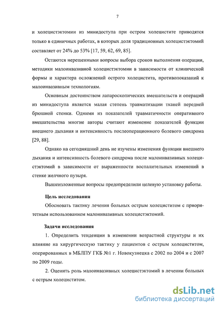 Обосновать тактику лечения больных острым холециститом с приоритетным использованием малоинвазивных холецистэктомий.