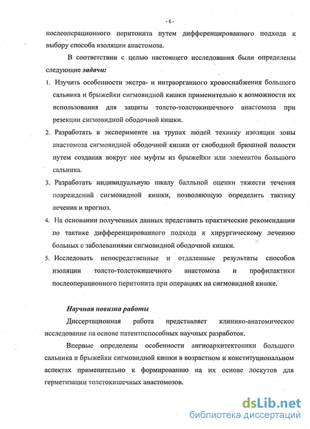 5. Исследовать непосредственные и отдаленные результаты способов изоляции толсто-толстокишечного анастомоза и профилактики послеоперационного перитонита при операциях на сигмовидной кишке.