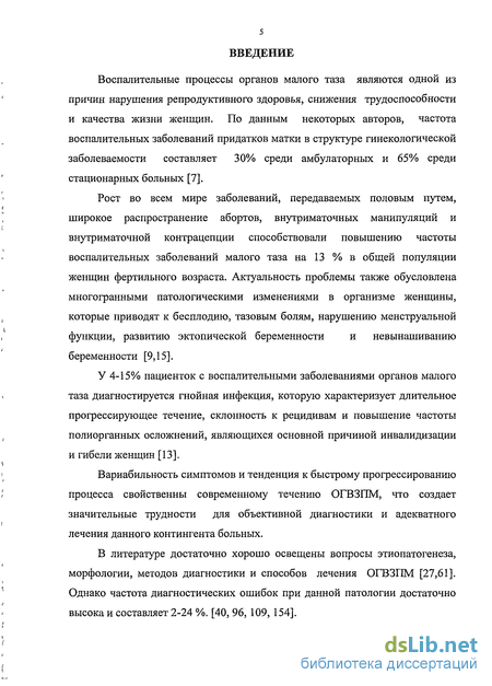 У 4-15% пациенток с воспалительными заболеваниями органов малого таза диагностируется гнойная инфекция, которую характеризует длительное прогрессирующее течение, склонность к рецидивам и повышение частоты полиорганных осложнений, являющихся основной причиной инвалидизации и гибели женщин [13].