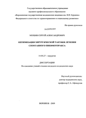 Одной из актуальных задач торакальной хирургии является лечение больных со спонтанным пневмотораксом (СП). Наиболее часто он диагностируется у пациентов в возрасте от 20 до 40 лет, хотя может встречаться и в первые месяцы жизни, и в глубокой старости. СП относится к числу ургентных хирургических заболеваний, требующих неотложной медицинской помощи, и составляет около 20% от общего количества заболеваний органов грудной клетки требующих срочной помощи (Кабанов А.Н., Козлов К.К., Кабанов А.А. и др., 1990; Федоров В.Д., Старков Ю.Г., Стрекаловский В.П., 1998; Неусыпин В.В., Зеленин М.М., Козлов Г.К., 1999; Бисенков Л.Н., Зубарев П.Н., Трофимов В.М., Шалаев С.А., Ищенко Б.И., 2002; Нагаев А.С., Трофимов В.В., Чуприянов А.В., 2006).