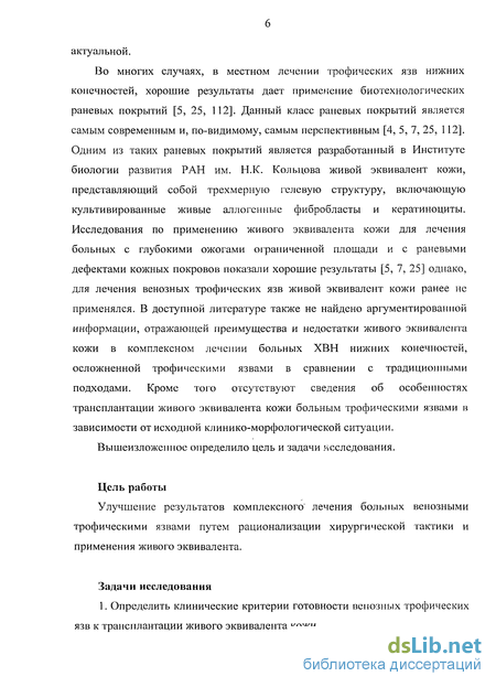 Разработать методы комплексного оперативного и консервативного лечения больных венозными трофическими язвами с использованием живого эквивалента кожи.