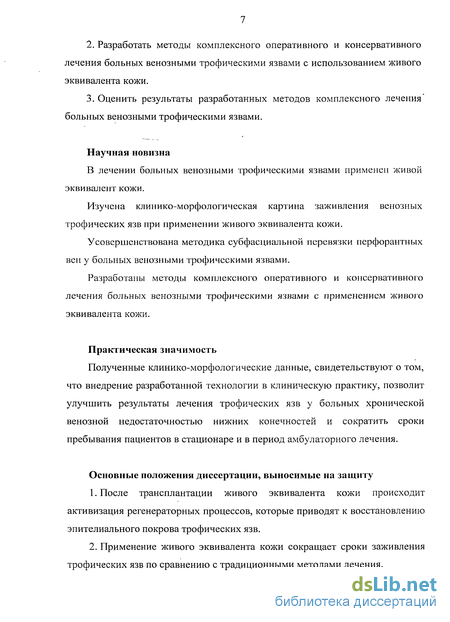 Разработаны методы комплексного оперативного и консервативного лечения больных венозными трофическими язвами с применением живого эквивалента кожи.