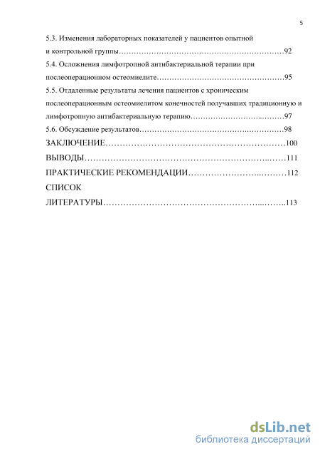 5.5. Отдаленные результаты лечения пациентов с хроническим послеоперационным остеомиелитом конечностей получавших традиционную и лимфотропную антибактериальную терапию 97