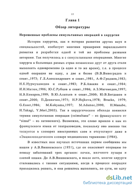 Глава 1. Обзор литературы. Нерешенные проблемы симультанных операций в хирургии 11