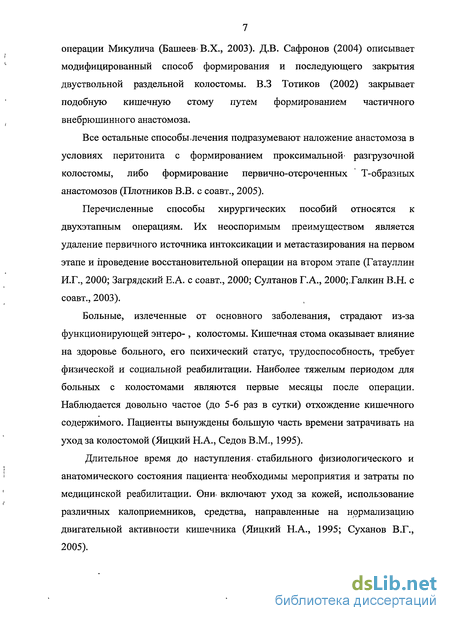 Уточнение показаний к формированию кишечных стом, усовершенствование способов оперативных пособий, улучшение методов ведения данной категории больных - актуальные проблемы для колопроктологов и хирургов в настоящее время (Петров В.П. с соавт. 1999; Чернов В.Н., 1999; Шеянов Є.Д., 2000; Земляной. В.П. с соавт. 2001; Рудин Э.П. с соавт., 2002; Ханевич М.Д. с соавт., 2003; Васильев СВ. с соавт., 2005; Pusajo J.F. et al., 1993).