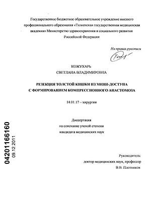 Внедрение результатов исследования. Разработанные методики операций внедрены в практику работы колопроктологического отделения КОКБ г. Кургана. Результаты работы используются в учебном процессе на кафедре клинических дисциплин ФПК и ППС ГОУ ВПО ТюмГМА.