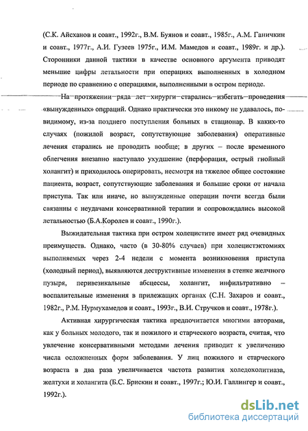 С другой стороны пожилой и старческий возраст, несмотря на свойственные ему нарушения со стороны сердечно - сосудистой, дыхательной и других систем организма, не может служить противопоказанием к оперативному лечению острого калькулезного холецистита. (Е.П. Яковцов и соавт. 2001г., Ф.Н.Нишанов и соавт. 2001г., С.Г. Лыхно и соавт. 2003г).