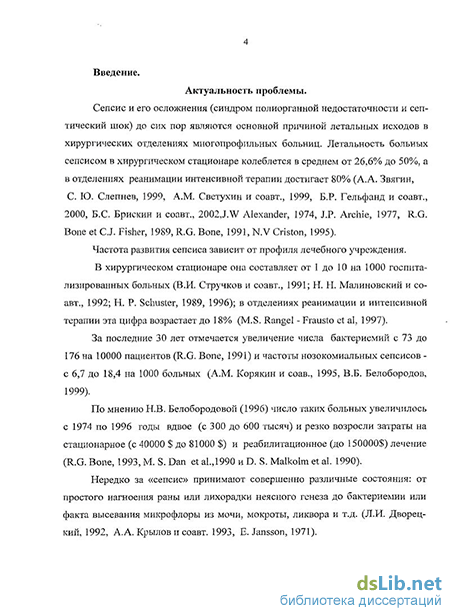 Поданным Н.В. Белобородовой (1996) и R.G. Bone (1993) количество больных сепсисом во всем мире постоянно увеличивается и прогрессивно возрастают затраты на их стационарное лечение и реабилитацию.