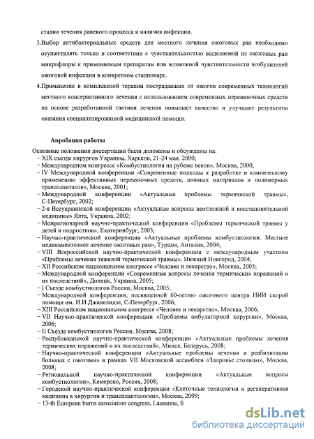Международной конференции «Актуальные проблемы термической травмы», С-Петербург, 2002;