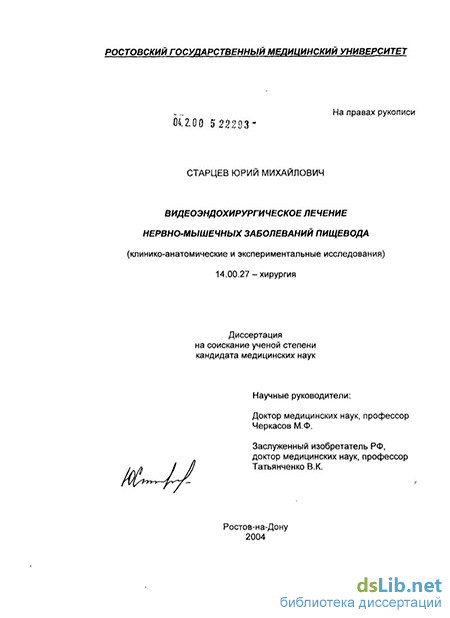 Целью настоящего исследования является улучшение результатов лечения больных нервно-мышечными заболеваниями пищевода путем разработки и клинического использования видеоэндохирургической методики.