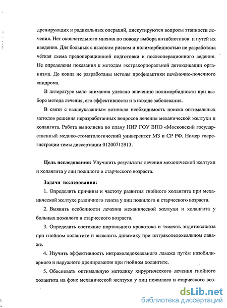 Бекеров, Бекер Мевлидович. "Выбор метода лечения гнойного холангита при механической желтухе у лиц пожилого и старческого возраста : диссертация ... кандидата медицинских наук : 14.01.17 / Бекеров Бекер Мевлидович; [Место защиты: ГОУВПО "Дагестанская государственная медицинская академия"].- Махачкала, 2011.- 84 с.: ил.