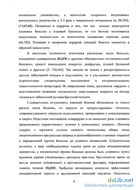Следовательно, актуальность лечения язвенной болезни объясняется не только ростом числа больных, но нередко ее прогрессирующим течением, сопровождающимся тяжелыми осложнениями, приводящими к инвалидизации и смерти Отдельные специалисты игнорируют и не понимают роль планового превентивного хирургического лечения в современных условиях. Поэтому хирурги и терапевты должны находить оптимальные точки соприкосновения при решении вопроса о целесообразности плановых операций у определенной группы больных до развития осложнений. Практические врачи не всегда владеют информацией о прогностических факторах, определяющих тяжесть течения ЯБДПК Требуется оптимальное сочетание эффективной консервативной терапии и превентивной плановой хирургии. Отсутствие четких критериев для отбора больных на плановые операции по поводу язвенной болезни ДПК стало основанием для выполнения данной работы.